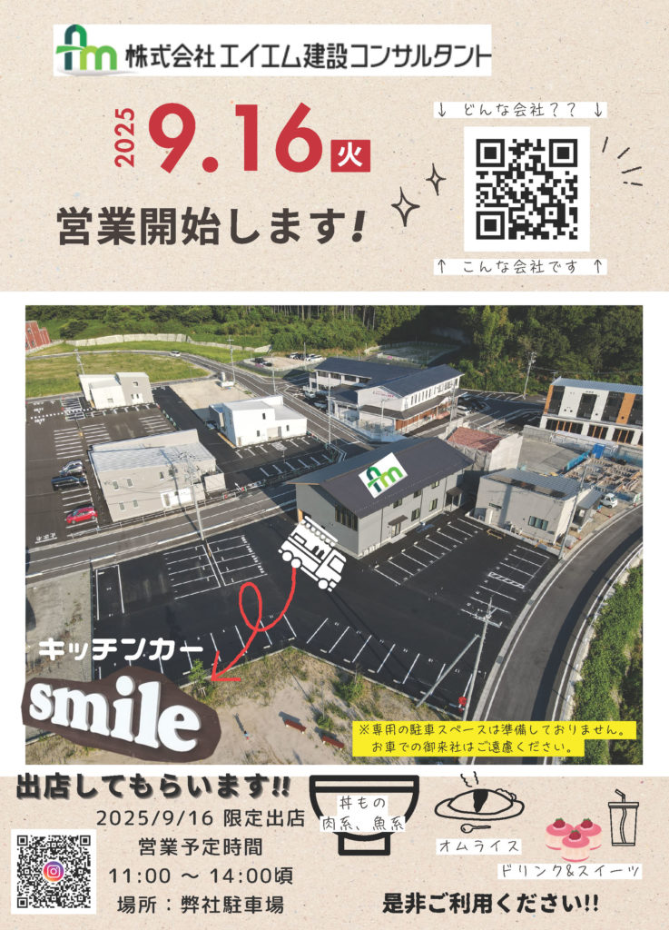 営業初日を記念して、当日は キッチンカー「smile」 が敷地内にやってきます!